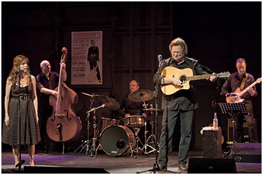 Nach einer knappen Stunde Show ein weiteres Highlight: Cash bittet June Carter auf die Bühne, um mit ihm zu singen. Die tänzelt flink und fröhlich von hinten hinein und beginnt mit dem „Juke Box Blues“. Dabei wirkt sie wie ein kleines, junges Ding, lacht, scherzt, wirft die Haare und den Rock im Rhythmus. Mit der 57-jährigen Helen Schneider eine Traumbesetzung. Sie spielt zum ersten Mal eine Countrysängerin und sie macht das, wie schon so vieles vorher, grandios. Sie singt hervorragend (keine Frage!) und wirbelt wie das Original über die Bühne. Wie keine andere fühlt sie sich in die Person der June Carter, in ihre Musik, ihren Gesang hinein. Ganz Profi und auch irgendwie ein kleiner Halt für Gabriel, für den das Ganze ziemlich neu ist.